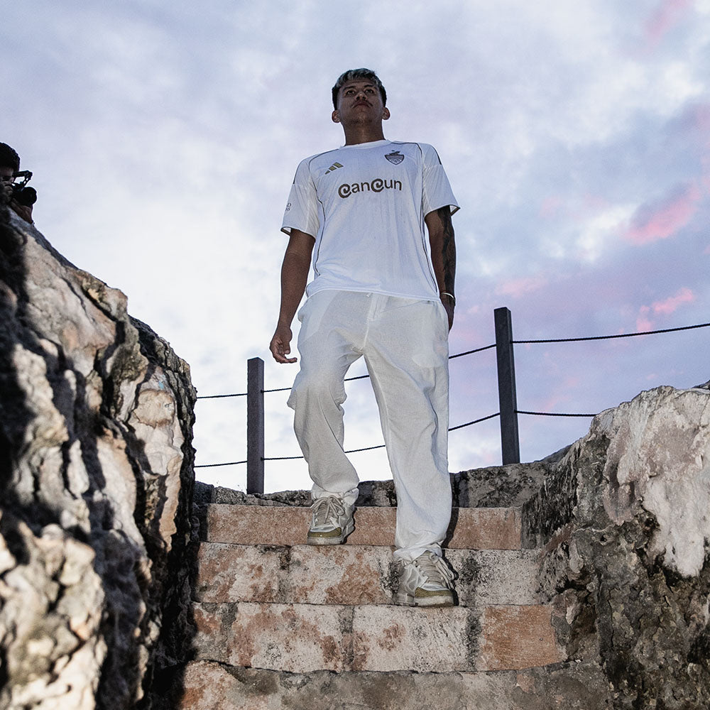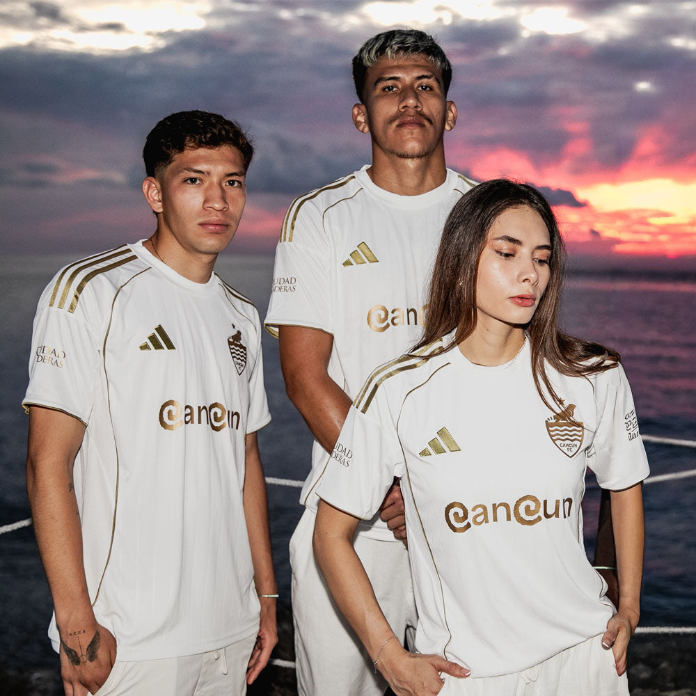 Inspirado en el poder ancestral del Caribe, el jersey Oro Maya de Cancún FC es una prenda que conecta historia, fútbol y orgullo mexicano ⚽🇲🇽. Su base blanca refleja pureza, mientras los detalles dorados evocan el legado sagrado del sol y la fuerza de quienes caminaron estas tierras.
